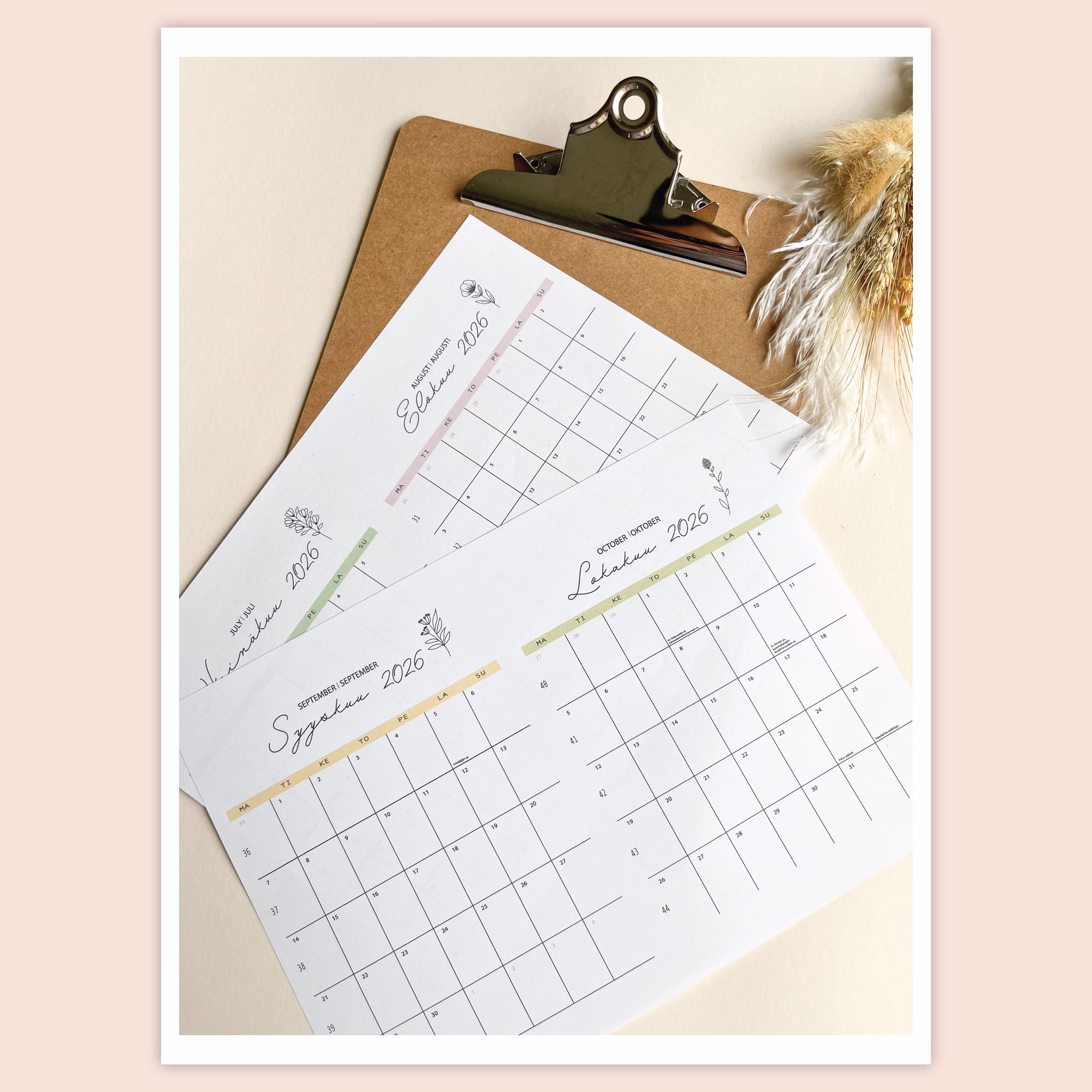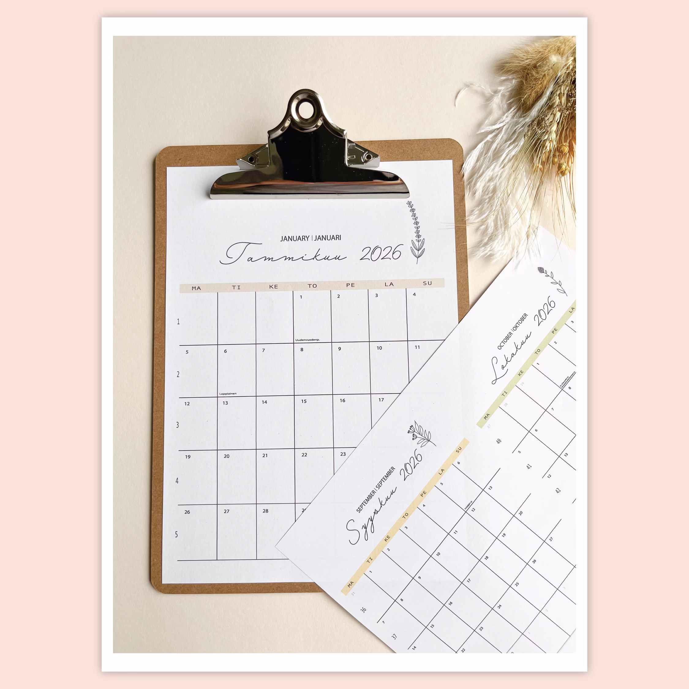RUUDUKKO-seinäkalenteri vuodelle 2026 on ihastuttavan yksinkertainen itse tulostettava seinäkalenteri. Kalenteri sopii täydellisesti niille, jotka haluavat yksinkertaisen, mutta tyylikkään kalenterin seinälleen. Tämä seinäkalenteri on täydellinen tapa järjestää vuoden 2026 tapahtumat ja tärkeät päivämäärät.