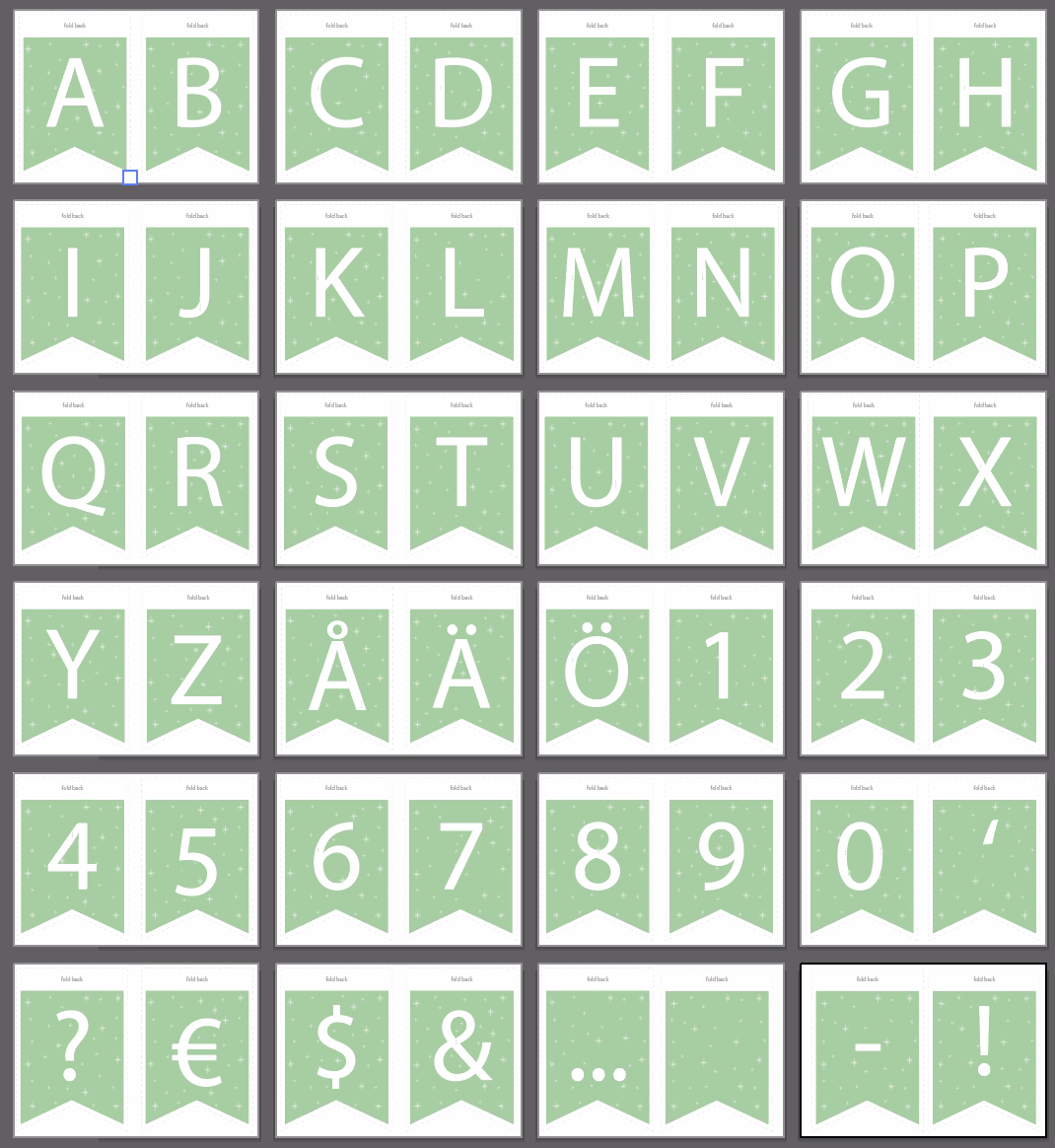 Koska setti sisältää koko aakkoston, numerot ja erikoismerkkejä neljässä eri värissä, voit käyttää samoja viirejä uudelleen ja uudelleen eri juhliin.
